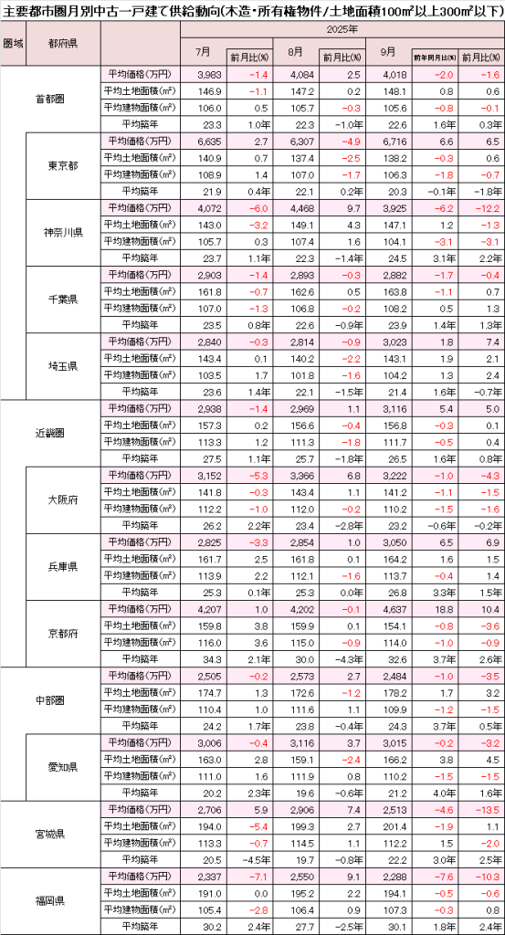 9月の首都圏中古一戸建て住宅価格は、前月比-1.6%の4,018万円と下落した。東京都は+6.5%の6,716万円と上昇。平均築年が2年近く若返った。前年同月比の築年は同水準だが、価格は上回っている。神奈川県は-12.2%の3,925万円と、前月の反動で大きく下落した。千葉県は-0.4%の2,882万円と3ヵ月連続の下落。埼玉県は+7.4%の3,023万円と4ヵ月ぶりに上昇し、3,000万円台に乗せた。
